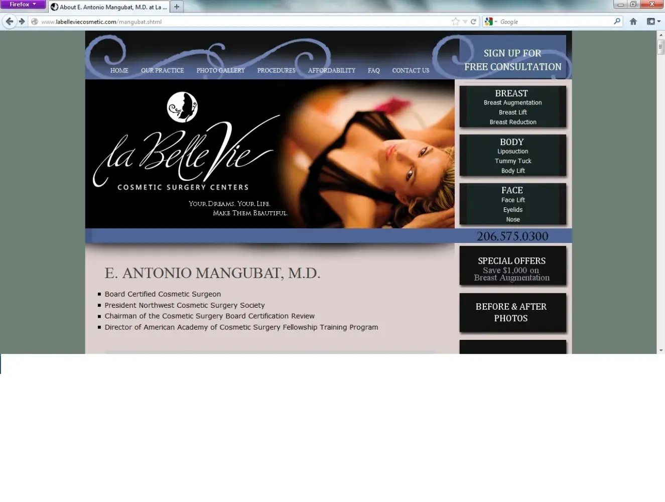 Dr. Tony Mangubat (aka Dr. E. Antonio Mangubat, Dr. Elmer A. Mangubat, Dr. Elmer Antonio Mangubat), LA BELLE VIE Cosmetic Surgery Centers, is INCOMPETENT (Tukwila, Washington) This is a NON-COMMERCIAL posting/website. Any statements I make below are my own opinion. To read PROOF of Dr. Tony Mangubat’s (aka Dr. E. Antonio Mangubat) INCOMPETENCE, please...