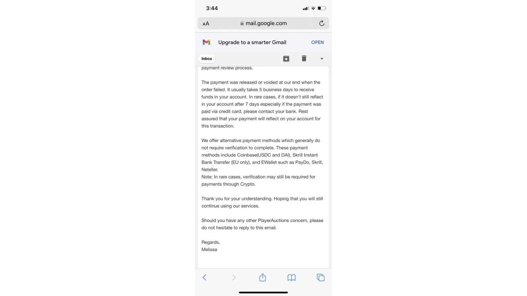 Playerauctions team never mailed the reason for cancelling the account and never asked me to revoke ownership before initiating the refund
