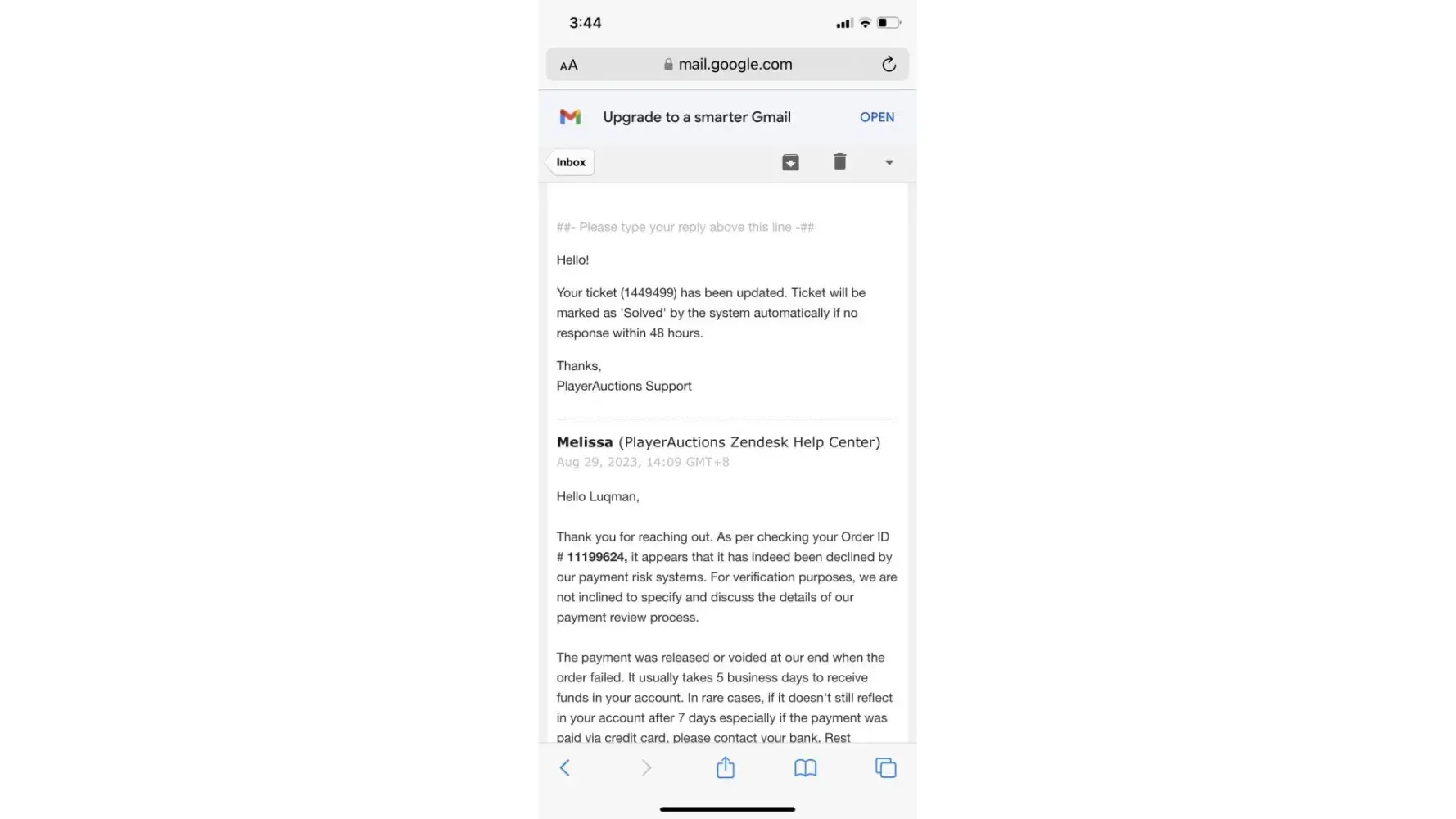 Desired outcome: I want my money and full update on that account because i also got the confirmation email from buyers side and playerauction website