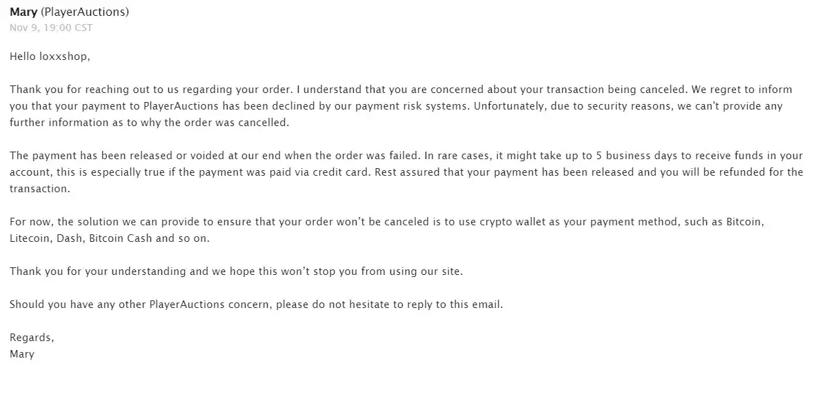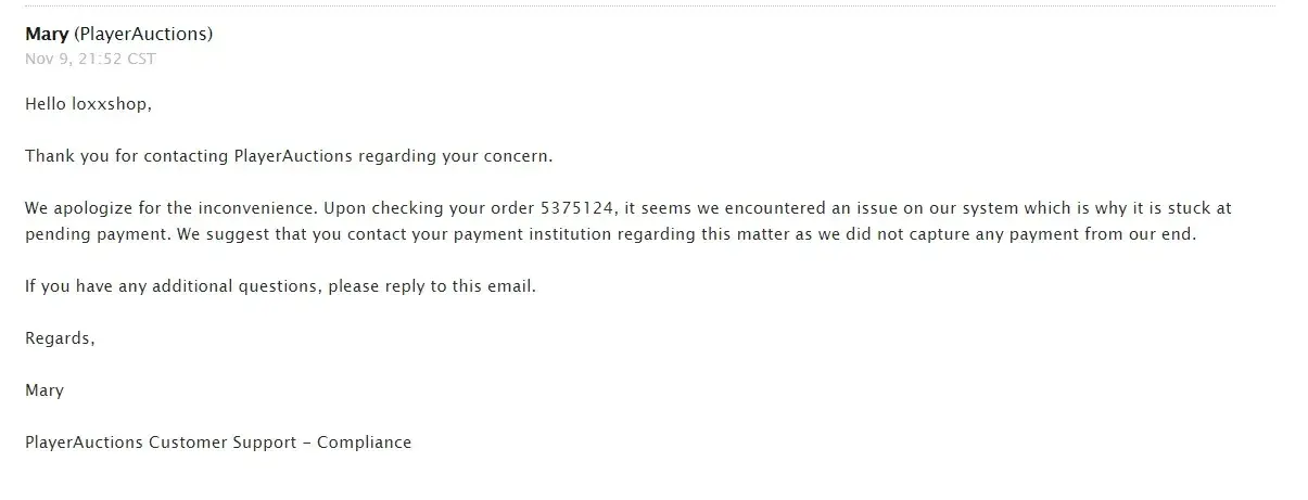 I've submitted a support ticket to PlayerAuctions on October 31st and have yet to hear anything back from them.