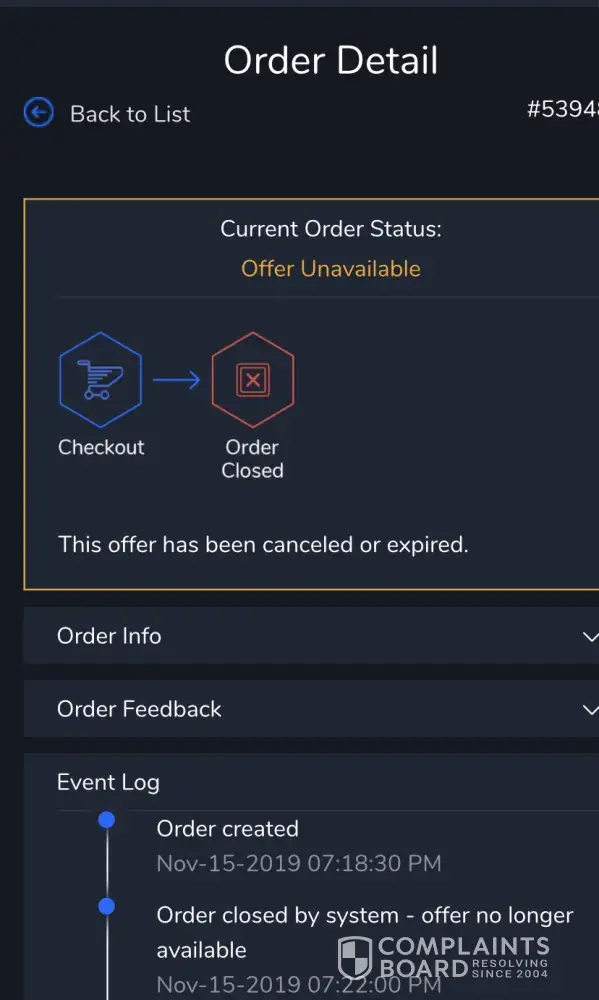 I went to purchase some in game currency on the 15th of November. The site allowed me to select an offer and pay for it. However, upon a successful payment through bitcoin the order I had PAID for became ‘unavailable'. As a result, i was charged and did not receive my currency. Furthermore, I contacted support and was regurgitated the same answer Copy and paste answer with no eta on my refund.