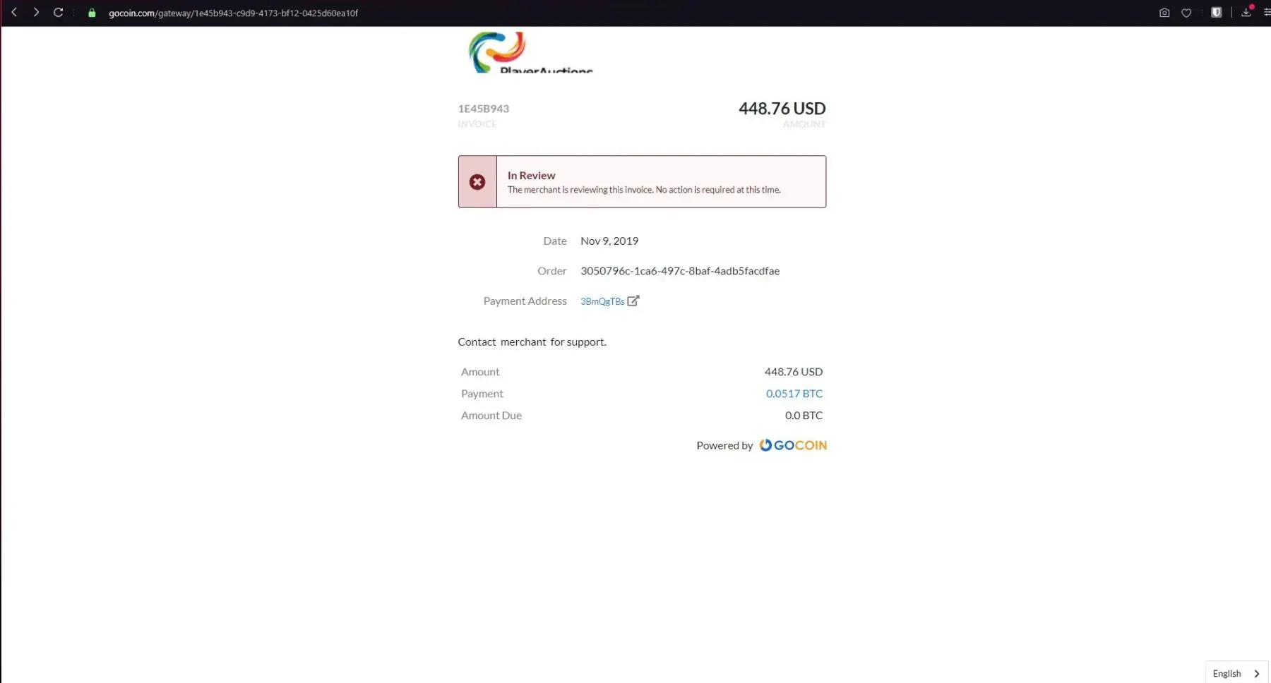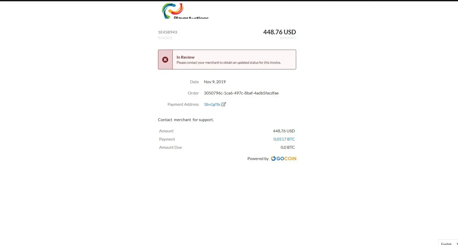 Forgot to add the photo from GoCoin showing received and sending me back to the merchant, PlayerAuctions. The first one shows when it was apparently pending, the second shows when it was received and I am referred to the merchant.