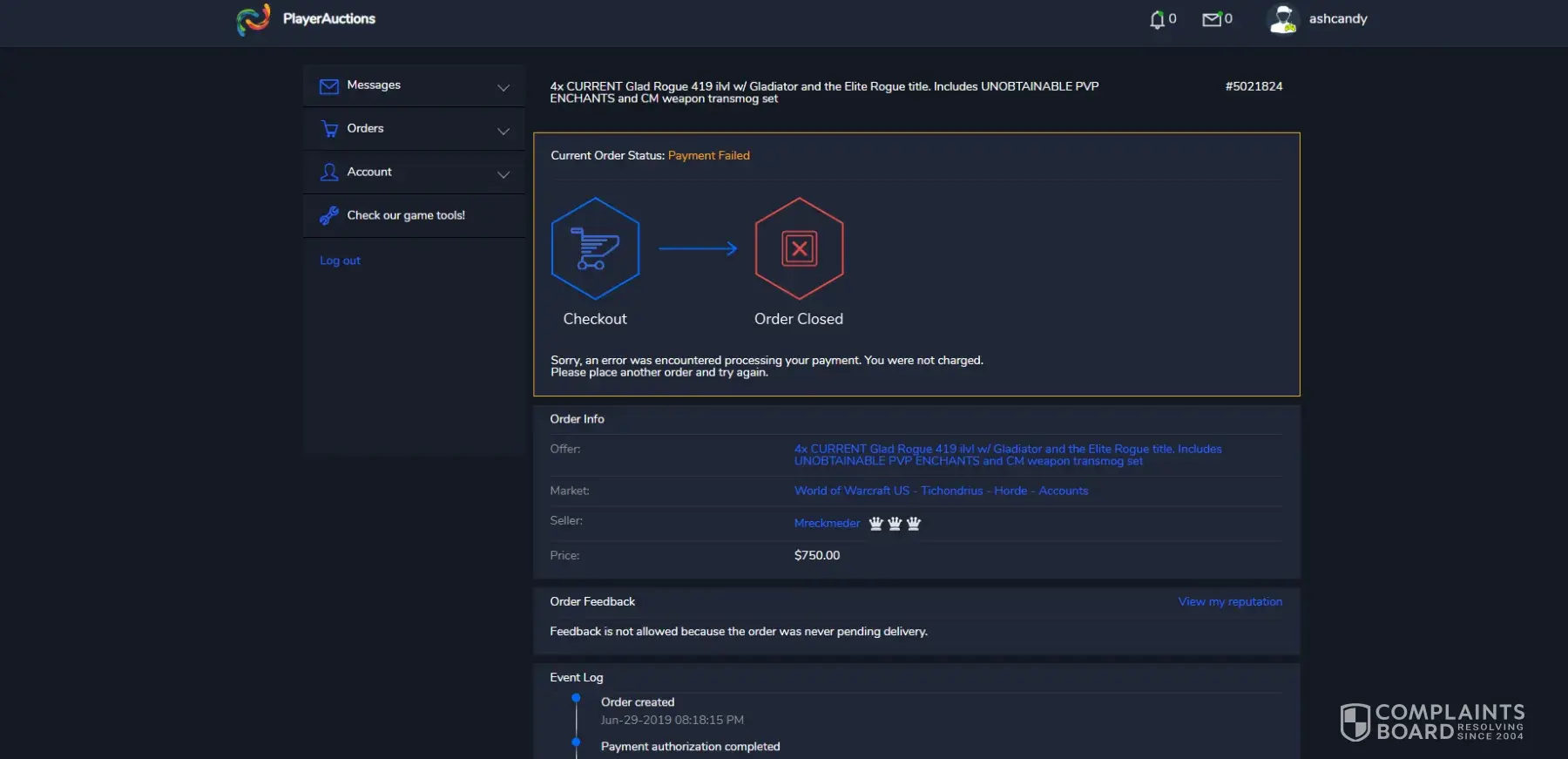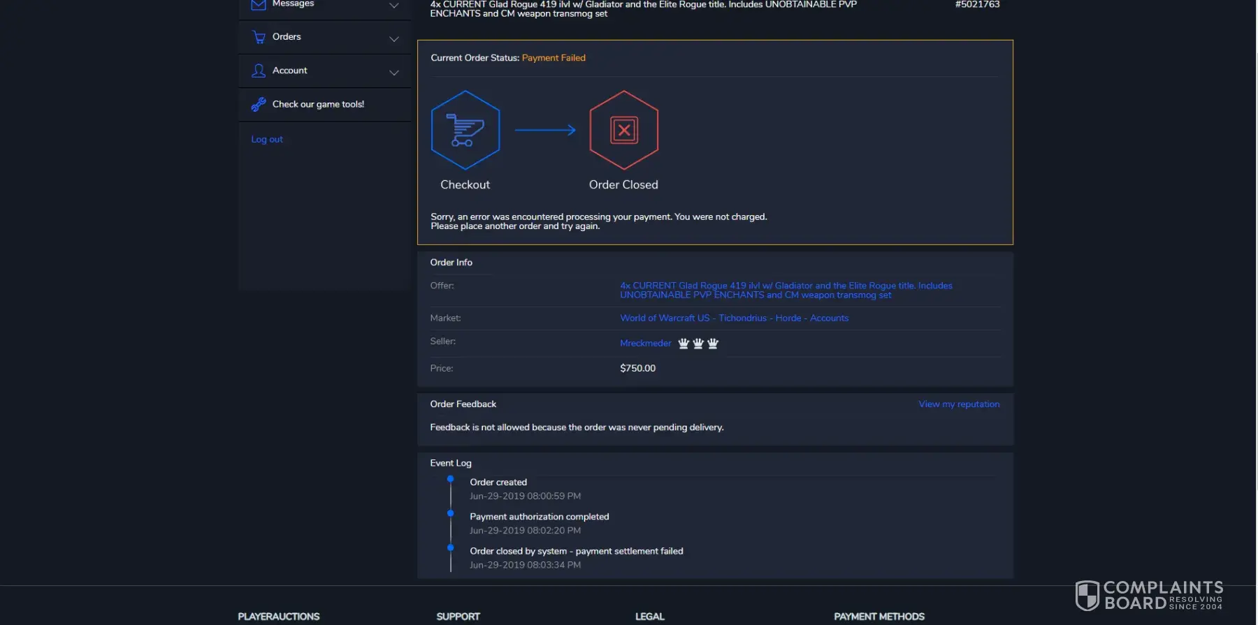 PlayerAuctions Complaints Page 13 of 20