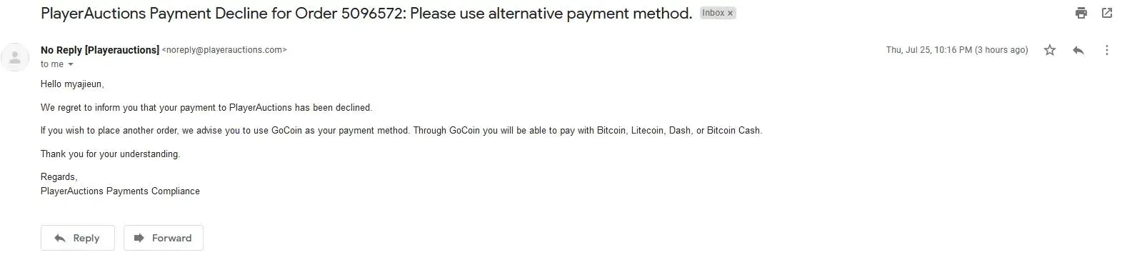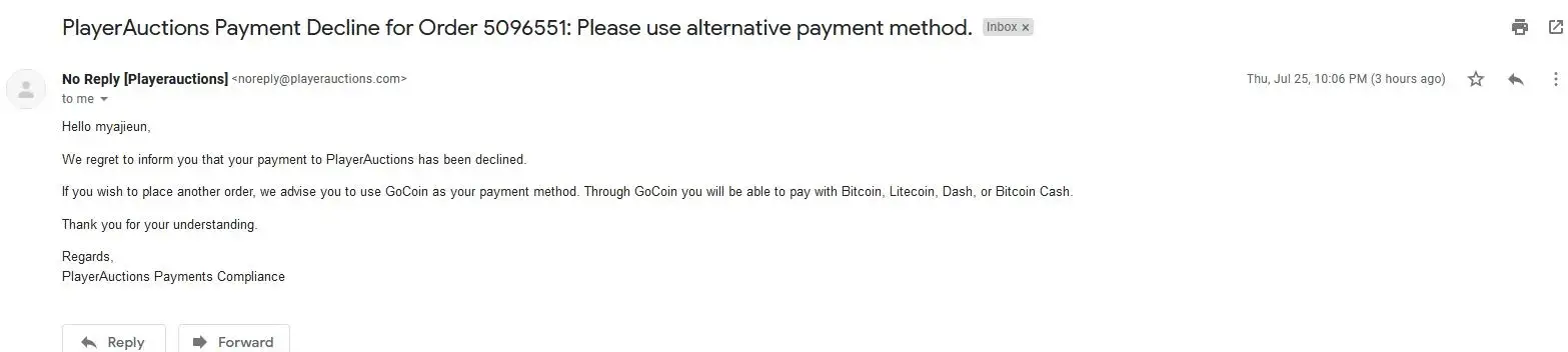 PlayerAuctions declined payment