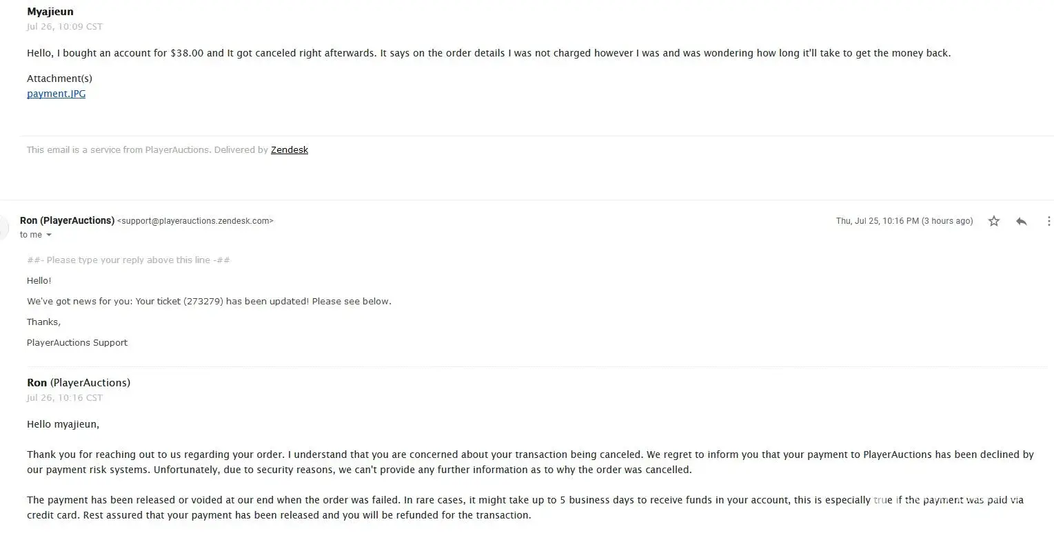 PlayerAuctions payment declined but still charged twice!