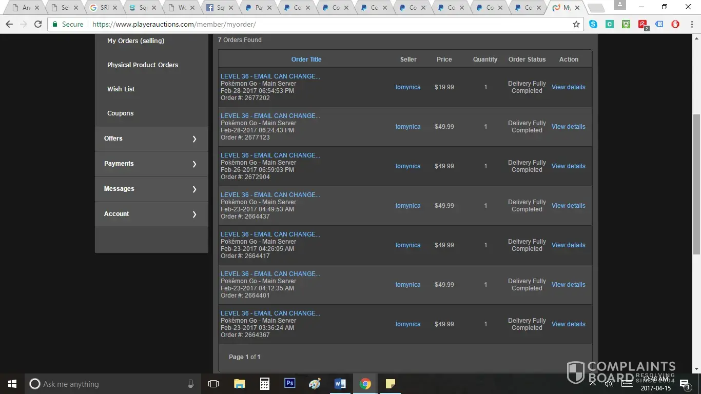 I then disputed all the orders in question with playerauctions dispute process. Waste of time! Over 1.5 months of sending them emails back and forth, playerauctions did absolutely nothing. They ignored my emails, ignored my refund requests, ignored all the evidence I provided, and released the funds to the seller without resolving my cases.