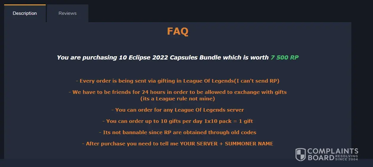 - Bought a LoL gift and after Isent my username and server to the seller as posted in the add ( image below)