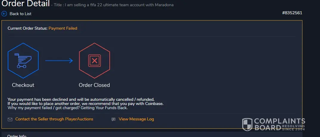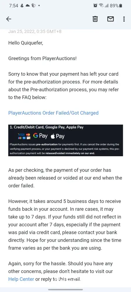 Made a payment for around 85 dollars to Playerauctions on the 11th of january. The payment failed due to unknow reasons, it was stuck in pending for a while.