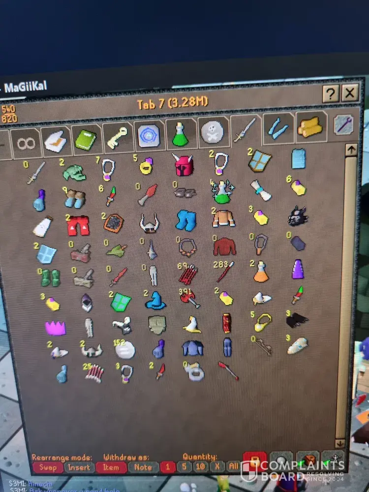 I would appriecate this done swiftly and in one message, save time on all the back and forth thats needed all photos I have have been uploaded from the items/bank/gp missing.