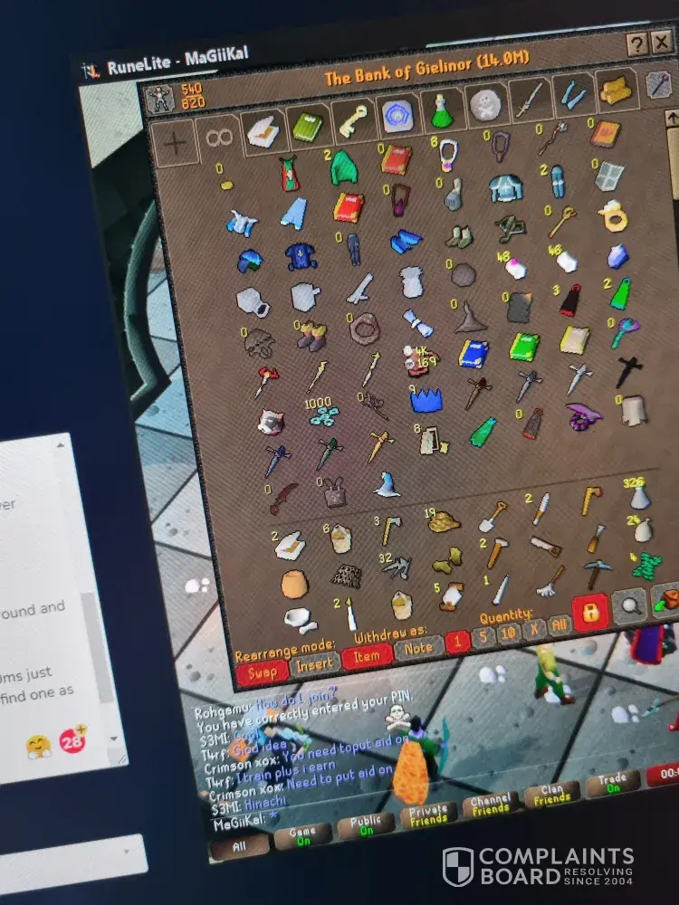 7. Just a few short days before, FOR THE EXACT SAME OSRS USERNAME - I purchased 300M GP gold from chicks, this is the only account I have and thats all the gold they cook minus just a few million - total hacked over 250MGP.