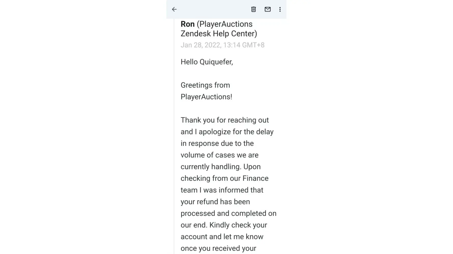 PlayerAuctions Refund not received