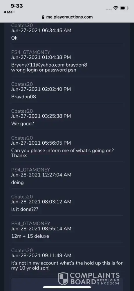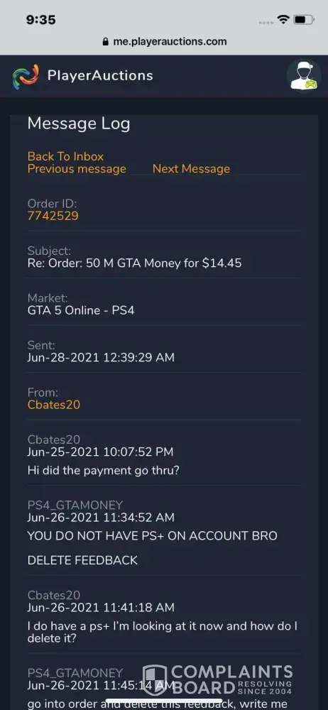 I purchased some GTA 5 money for the ps4 and never received the items I played $15.07 for. I contacted customer support numerous times and I get the same old replies saying that there looking into it. I am beyond pissed because the seller is playing games with me thru the text on the site. I don't know what to do but I want my money back. first the seller said he was going to work on it. Then he messaged saying that I'm not on psn which I am. You can't play GTA online without being in the psn network.