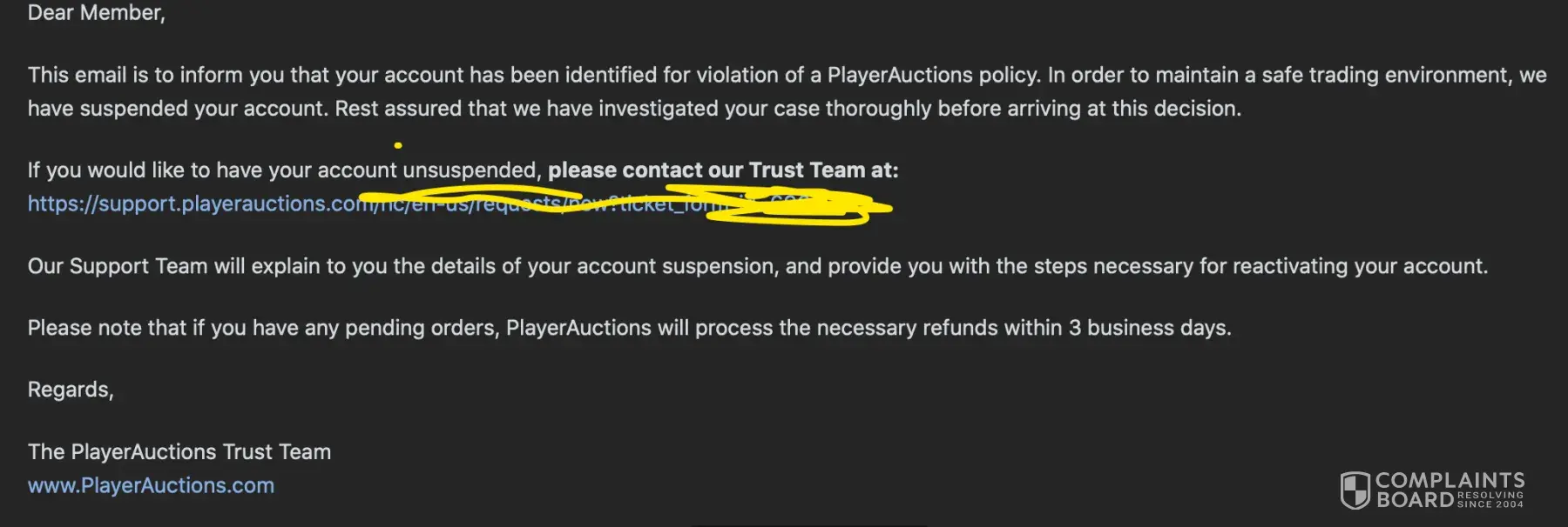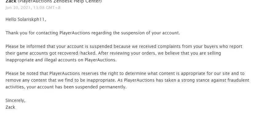 So I received an email after noticing my PlayerAuctions is banned. Here the reply: