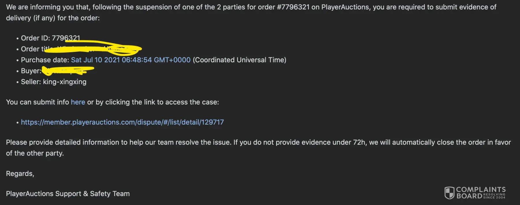I would expect some type of proof of me mishandling my accounts for sale. You say I had more than 1 case but what are other cases? Your team definitely looks like they went off 1 case because I only had one account for sale. THAT actually sold, that is the only order with an issue. There have not been any other disputes or punishments otherwise it would've happened way earlier. My account is 6 years old, PlayerAuctions haven't seen me sold 1 item in 5 years. Literally, 90% of my positive feedback comes from purchasing accounts or power levels from PA. That I confirmed to received, there wouldn't be any logical reasoning on me being reported from a purchase I made. Like I said this definitely seems like a big lie and I rather let everyone see how bad and corrupted PlayerAuctions is since this is a complaint.