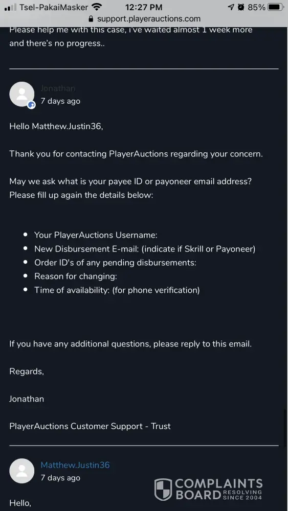 I will be sending an email to you at, [protected]@playerauctions.zendesk.com, with this above information. Please get back to me soon.