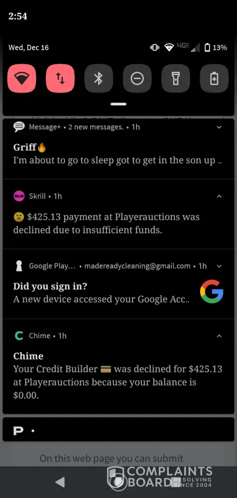 I'm writing in concern to my notification of attempted charges to 2 of my debit cards which luckily didn't all process but I have no idea how you (player auctions) came to have access not to mention permission or authorization to even attempt to charge my card. I have no account with you nor have I ever even heard of you before this... WTF?!? I need answers & sooner than later
