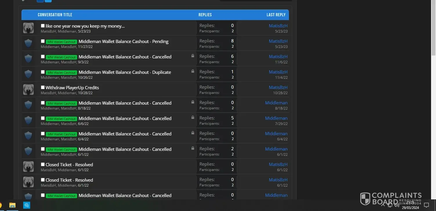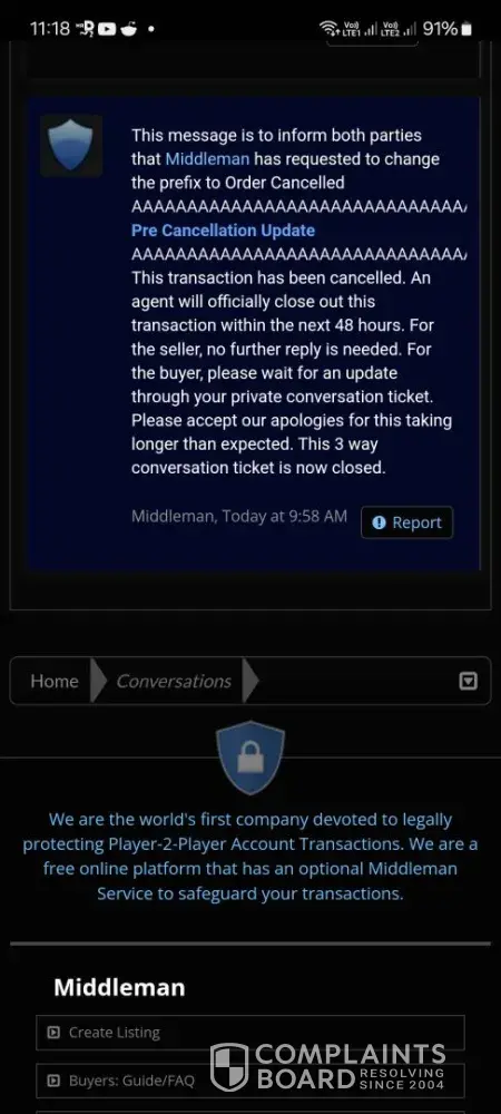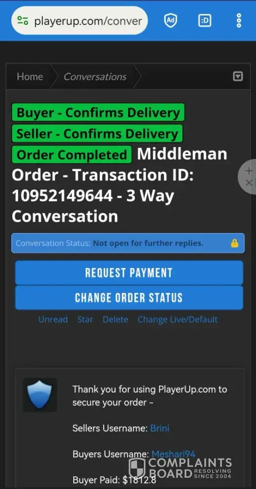 - March 2022 i sell an account for 1600$ on Playerup, Middleman must send me money after buyer have paid 1696$