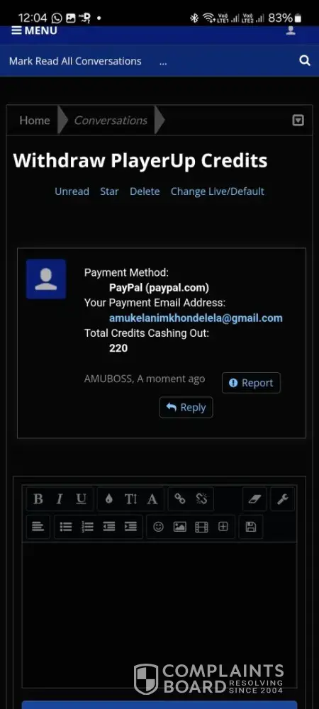 That page (playerup) is a scam, they never gave me my money, I wrote to them by telegram through the same website and they did not respond to me AT ALL, when I made my complaint on the opinion pages they responded to me to delete my reviews and they gave me my money and I listened to them and they did not comply, I am already tired, I no longer care about losing my money, I want everyone to know that this page is a scam, here I leave the images of the conversations, do not waste your money on that page. They threaten you with your money until you delete your review. To all those who have been scammed, file your complaint here https://reportfraud.ftc.gov/#/ so that the scamming page (playerup) can be sanctioned.