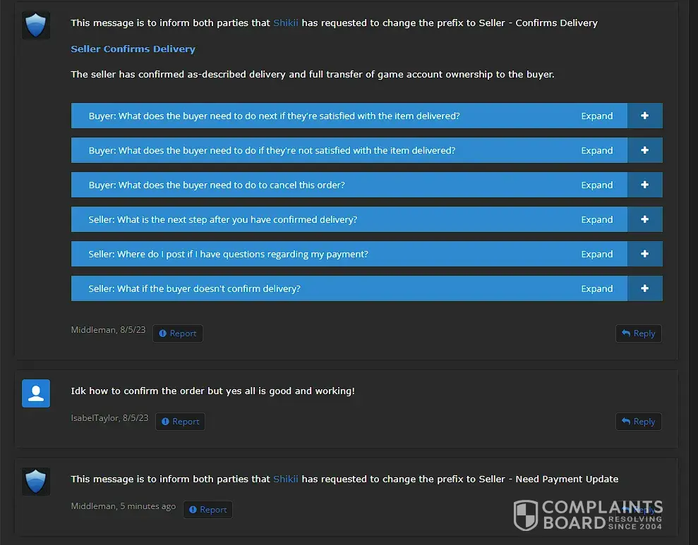 Sold my account. Order number [protected] Buyer was happy. The buyer did all the relevant things he had to do for me to recieve payment. Now the middleman won't release payment! I've sent message after message just to be ignored! I've been scammed! Please avoid. Awful experience
