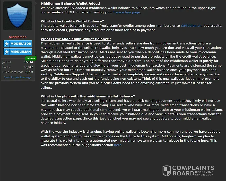 Cashout ticket has been there ever since without any payments. The middleman is out of reach and never replies neither on site nor on discord.