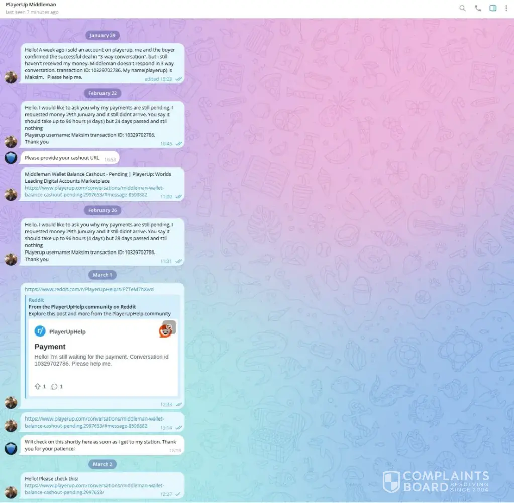 In January 2025 I sold an account on playerup.com using middleman services. But middleman does not pay me my money. The site support ignores my messages. In the telegram chat there are only empty promises. I will update my review later.