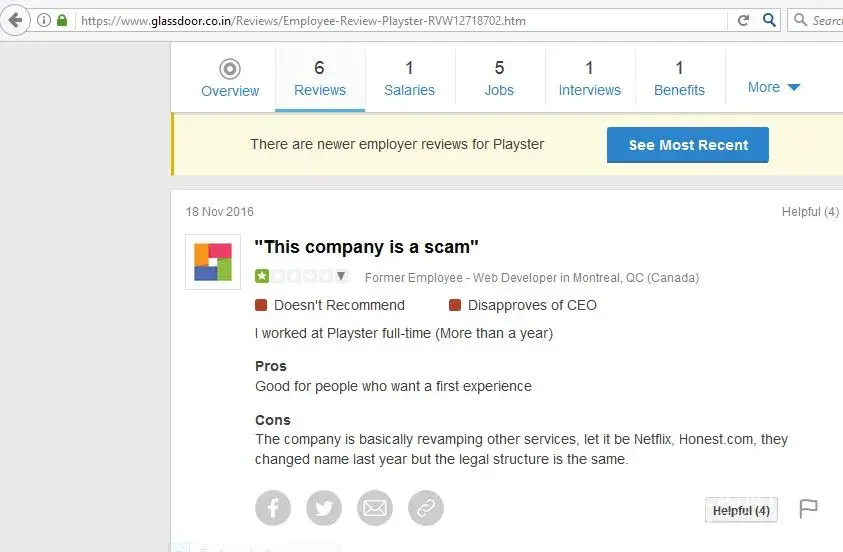 Playster earns a trustworthiness rating of 31%