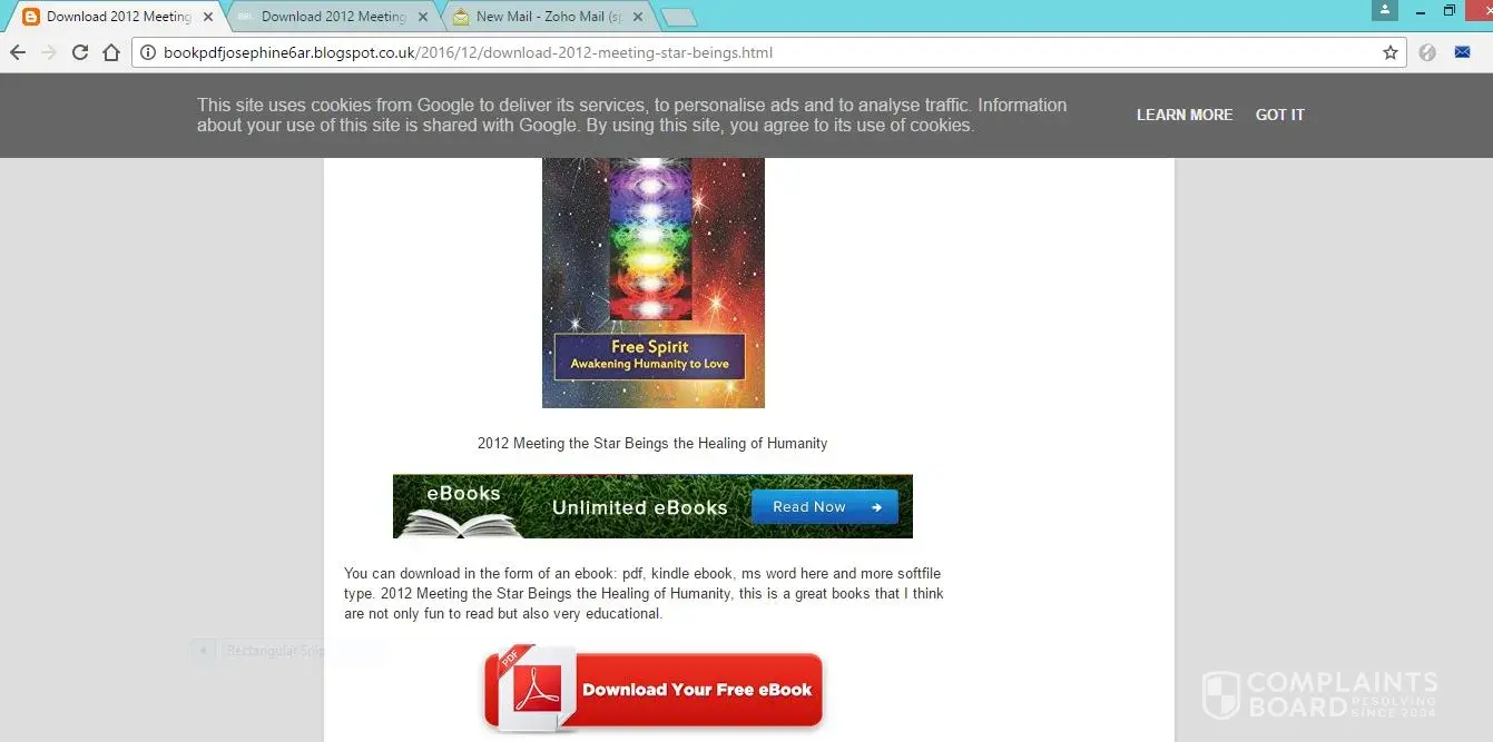The websites rank high in Google and proport to offer free downloads via Playster. The scam is that usually the book is not available, but one only finds out after signing up for a free trial, which many consumers report difficult to cancel and incur charges on their credit cards