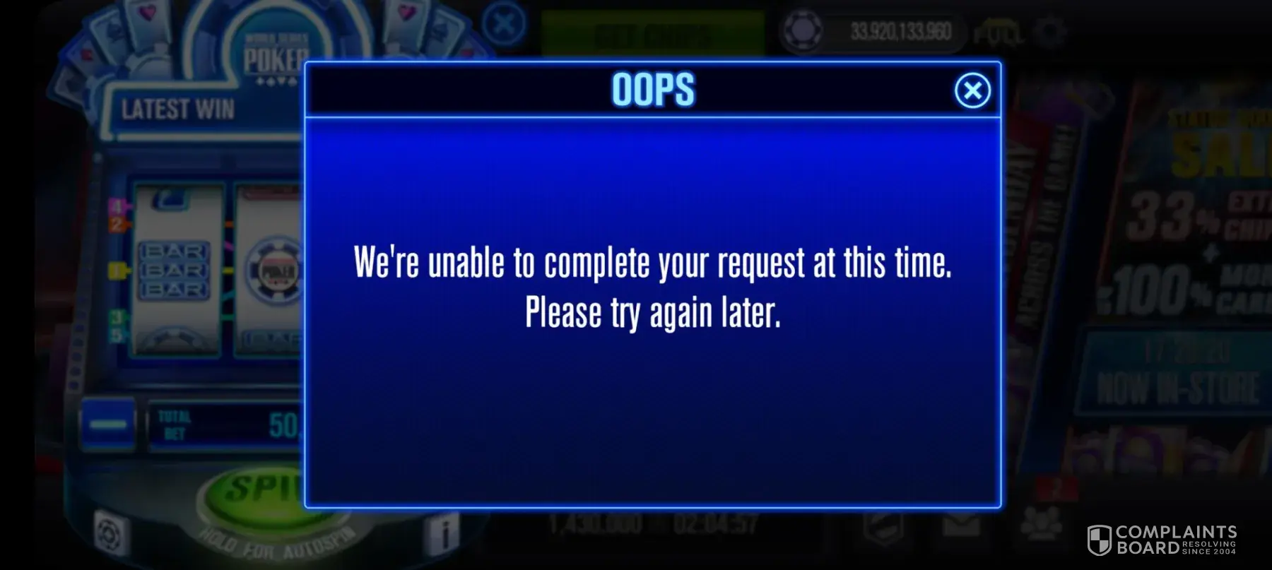 2 days ago, I attempted to purchase chips in the WSOP app. I received an error message saying that the purchased failed, but if I was charged for it, I should contact customer support. I attempted another purchase, which was successful.