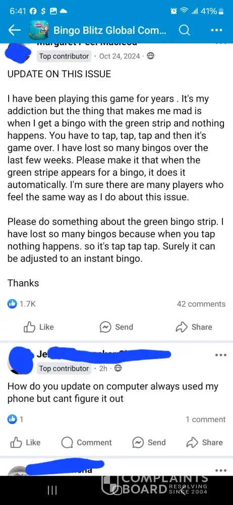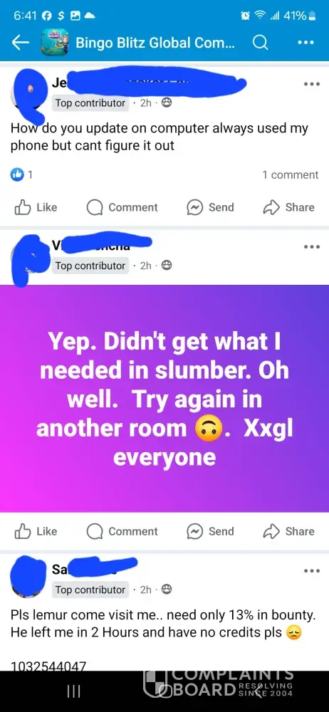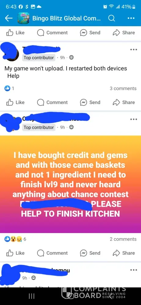 Over the last two weeks I have purchased 7,000 credits. I have been sitting and waiting for 22 in fire trunk. And over a week never seen it until yesterday. I was doing great getting bingos at least one every game until it showed up and then didn’t get even 5 daubs on that game. Not even just that the game has been kicking us out, lagging really bad, and freezing during games causing people to loose out on credits and then having to go another week before seeing the ungiftable they need to finish.. I am so tired of complaining to the worthless customer service and being credited a lousy 200 credits. The only time the game allows you to get ahead even just a little bit is if you down over $100 on their packages which are not fair. It should never cost that much for 6500 credits. That’s insane. And then customer service sends you some random message saying this is by chance which is a blatant lie. They use algorithms to pre determine your winnings. So they choose to let you win or not. Which is crap. No one should ever have to go days, weeks, or months waiting on one sticker to win a game that you don’t even win real money on. You have a better chance with slot machines than you do bingo blitz. Or go spend your money to play real bingo. thus game is not even American owned. It was bought by a Chinese consortium. This game needs to be investigated for fair game play as well as the price of the cards to what you win back in return if you down bingo. It’s completely insane to purchase cards for 150