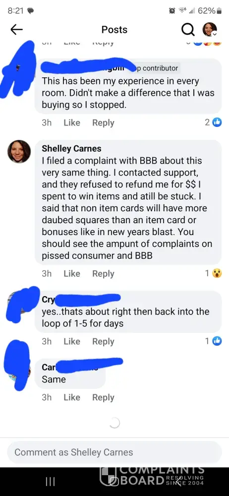 This, in my opinion, is just blatant dishonesty on Playtika’s part. They asked for and received proof of the purchases and are simply ignoring the evidence. So pitiful that a company of this size needs to stoop to ripping off its customers.