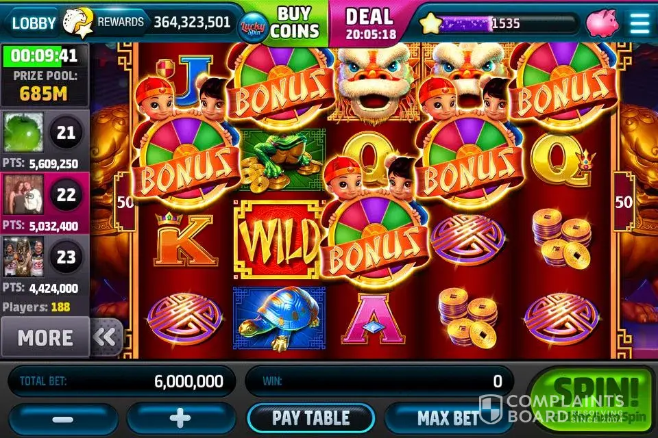 This is the second time it has happened, I got 5 bonuses on xin-fu and it did nothing, the first tim I was on 1mil a spin and support fobbed me off with 34million, this time I was on 6 mil a spin, and I was 23rd in tournament - as you will see in the picture, again support said it was a technical glitch :o
