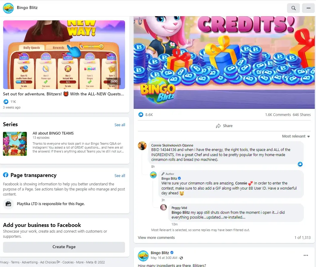 I cannot comment on the bingo blitz Facebook page or reply to a message, there is no button to contact them on messenger either. This happened within the last few days. I have not commented on the page for at least 6 months. I believe this is unfair and their is no explanation as to why I cannot comment or reply.