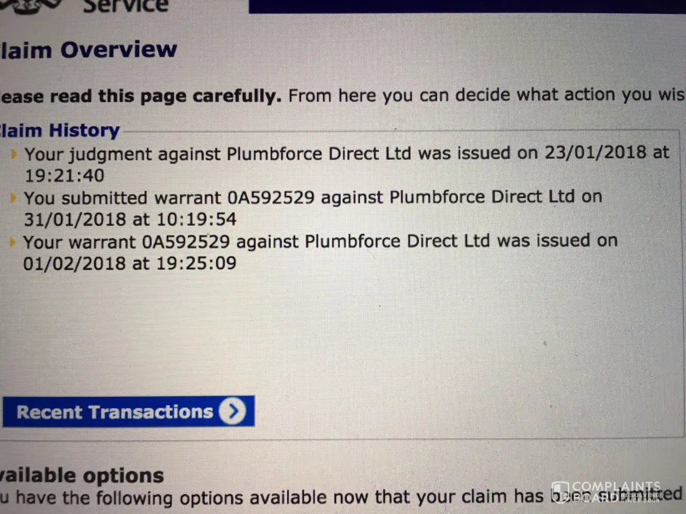 Plumbforce Direct complaint