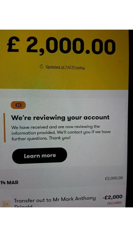 i transfer some amount and had near £1200 in my account they blocked and asked payslip i had provided still in review i could not contact in any way email also send so many times not any response this is trying to bank drops or scamming money from people every body don't use this or make scamming compline