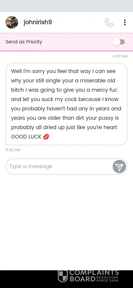 Read full complaint and 43 commentsabusive dating site, removes profiles with no explanation, supports predators...