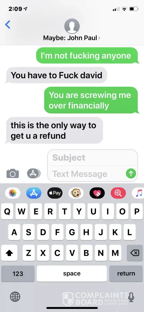 Spoke to three different men all sounded foreign . Asking for my card info saying I will be refunded via Apple Pay. I went around and around with no luck nothing they said worked. Then a man called me back said his name was David and at first seemed helpful then he said I had to open my photos and I would need to scroll through all my photos one by one to activate the refund I told him no way he told me it was the only way to get the money transferred even told me that he knows his job and if there was another way he wouldn't be taking so long. Then he told me I had to [censored] him the only way to get pairs was to [censored] him. Obviously I didn't open my photos and to say the least I was fired up.