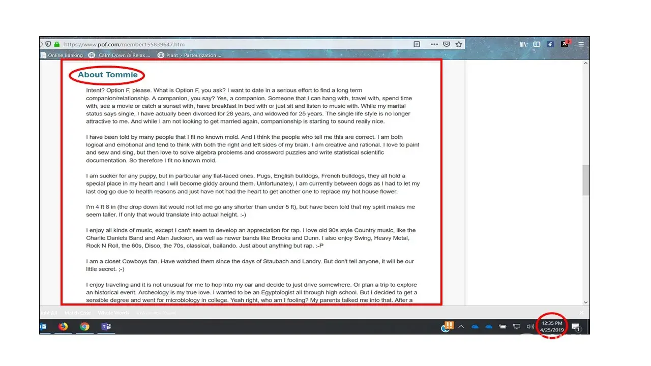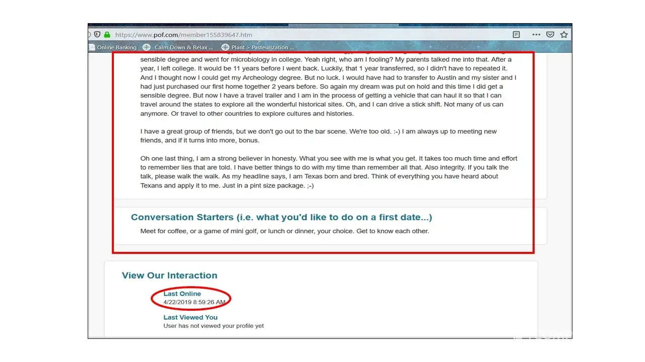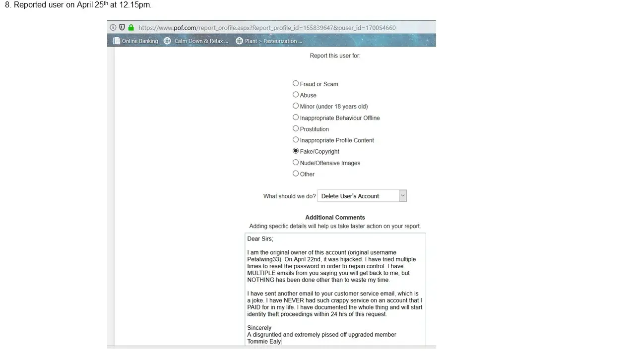 PoF.com / Plenty of Fish fraudulent profiles, phishing/scamming