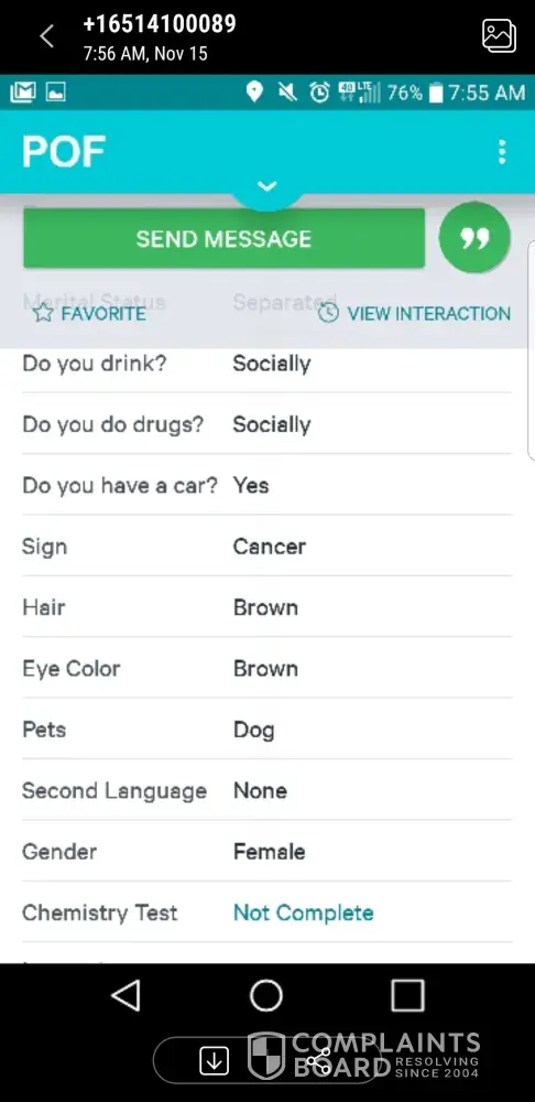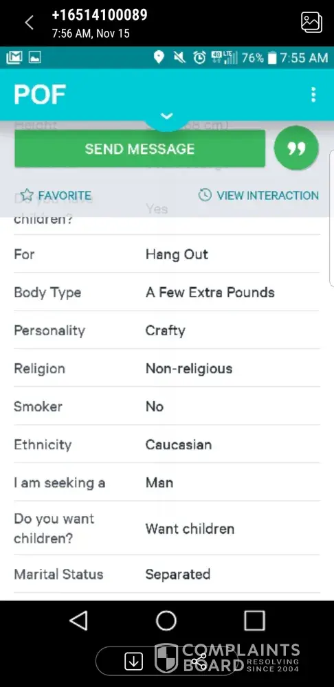 My name is Lacinda Nichols, i do NOT have a profile on POF. I have been getting messages. I believe it is my soon to be ex husband, Ricky which i has a restraining order against or his girlfriend Angela Gorr DOB 8/5/77 ADDRESS 444 meadow lane, Somerset WI 54025 phone # [protected] harassing me. Please i beg you find this profile and close it immediately!