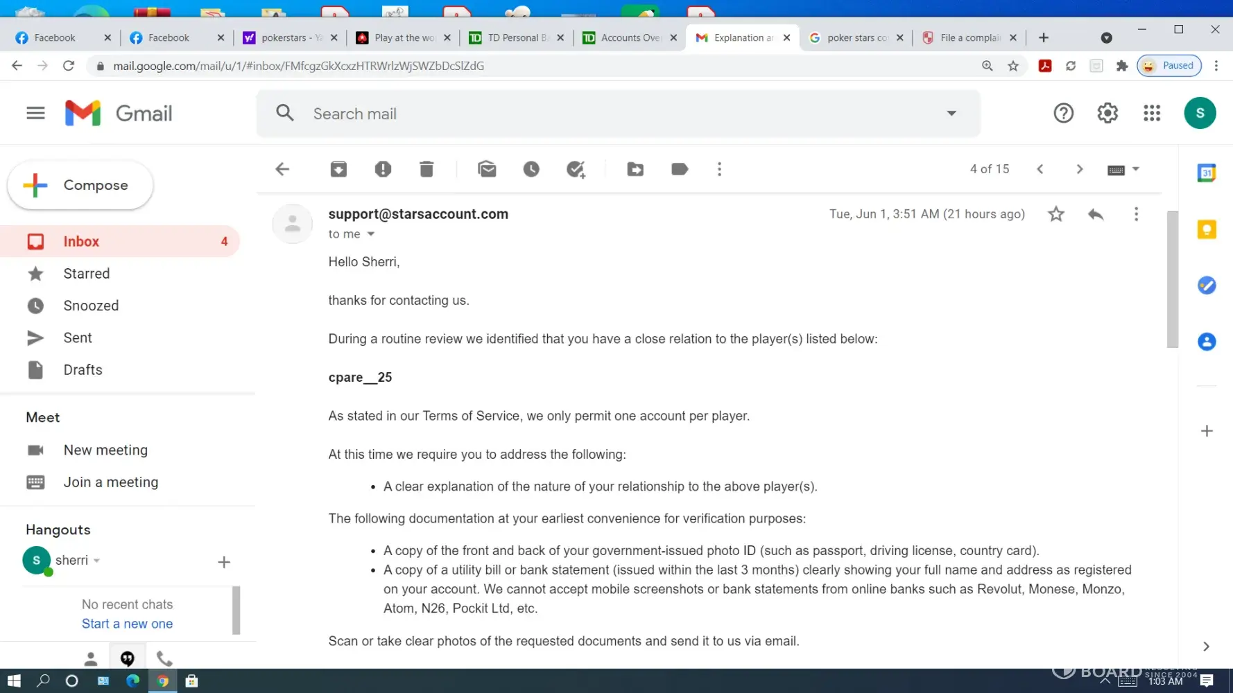 Desired outcome: Just want to play poker and casino again as have had zero issues in past. They always responded to my emails right away and now nothing.