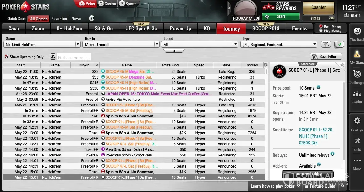 You can see in the picture that there are FREEROLL SCOOP games. Why are there expensive SCOOP games as well, and why do they appear for me if I want only FREEROLL AND MICRO games appearing for me? It seems that this was made on purpose, to confuse the player and make us spend more money that we don't want to spend.