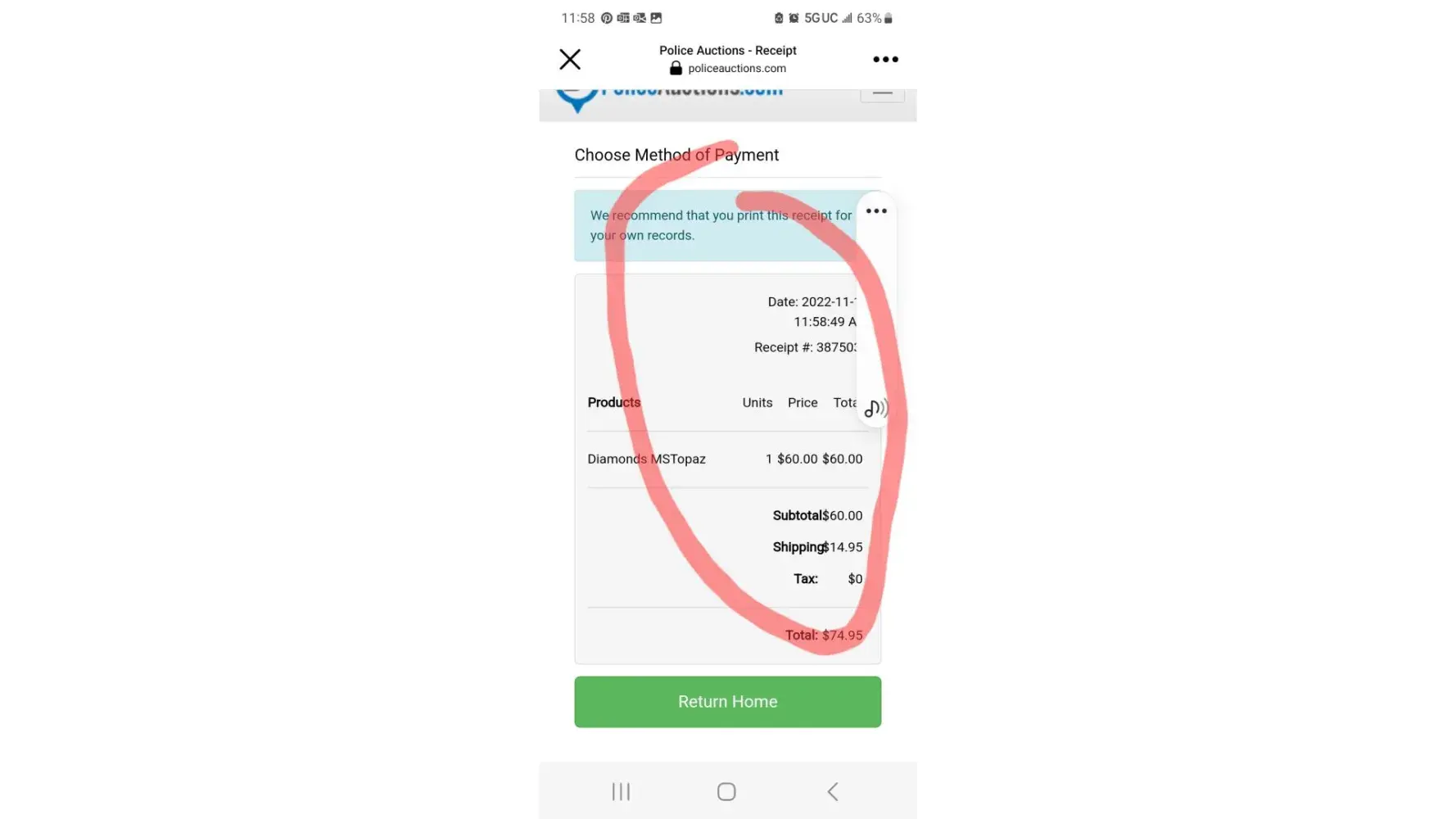 Bronze watch, silver ring yellow gold stones gold nugget it was a total of 5 items cant remember the other two said they were going to be delivered the 6 of may Attention police auction customer service