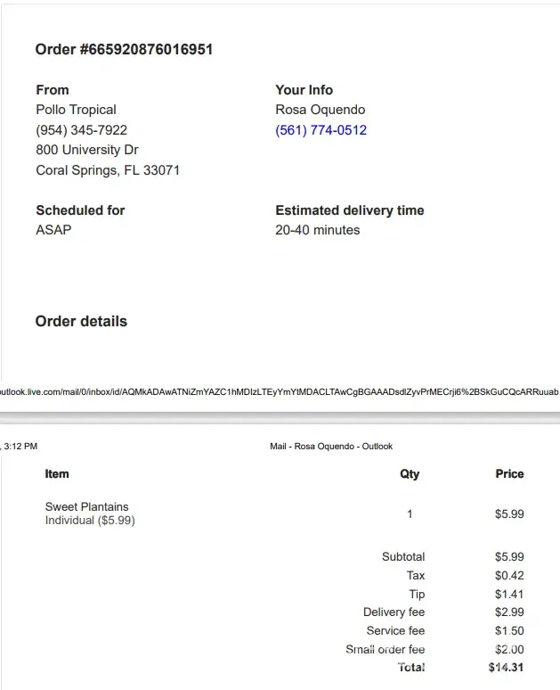 Read full complaintDelivery and pollo tropical ap