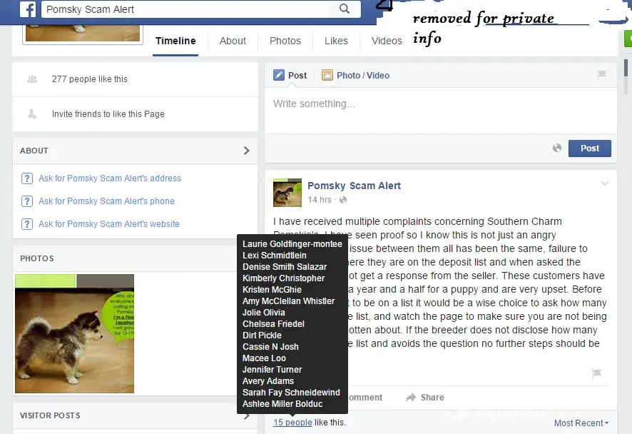 This is ridiculous. This smear campaign is being posted everywhere. This so called PCA is nothing more than a fancy was to retaliate and smear people. If you click on their website on their home page is this huge smear ad. Please stop posting you false smear campaign everywhere. Us other reputable breeders are tired of seeing this crap everywhere. In your rant you say if you see her speaking of us ill please tell us, at this point PCA should be more worried about others talking ill about your false club! Stay clear of these people in pomsky club of america. You want a mutt adopt it but if you must purchase this new pomski breed please talk to your vet or other well known breeders, they wil tell you this kind of behavior is frowned upon in our breeding world