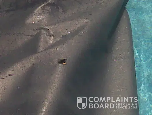 Settlement Sought: At this point in time I want money back or the cover replaced with a new non-defective product. I’m well beyond just settling for a repair especially when the local pool store said that if the cover was flaking around the hole that a standard patch would only be a temporary fix of 2 to 3 seasons. They also had all summer to affect a repair.