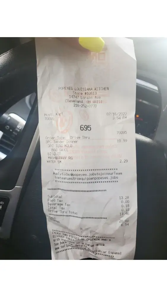 I visited the Popeye's on 14747 Lorain Avenue, Cleveland, Ohio on Saturday 7/16/22 around 3:30pm. Order # 695 I was the only car in the line. I stood at the ordering for 4-5 minutes before I said hello anyone there? No response. There were cars in the parking and the lights were on, but I thought maybe there was something wrong. I drove up to the window - again saying hello. No one in sight. Not ONE person in sight. I stood there in disbelief because people always tell me how TERRIBLE this Popeye's is and I guess it was my turn to experience it. A young guy finally pops up at the window so I asked: Are you guys open? He said yea oh my god noone has helped you yet? I said no- you are the first person I've seen and I've been at the ordering speaking for almost 10 now. He says he sorry someone will come help me soon. Eventually...this lady "Karl" per the receipt-(transgendered black woman to be exact) # 70095. nonchalantly comes walking up to the window --speaking out loud "Can I take your order" while pressing the button on her head phones. So I said...hey I was here first. She said she was testing her headphones (HOW AM I SUPPOSE TO KNOW!) No hi sorry for your wait, nothing. Very unprofessional and lazy. She takes my order- confirms it. 3 pc with mash/gravy and a water. I pay for a combo with water. Hello- am I insane to think for the wait the water would be free? It wasn't bottled - it was from the machine. I get my order- after she tells me to have a good day- she asks me if my mash is in the bag? I'm thinking...isn't it HER job to check? No of course the mash wasn't in the bag. The laziness and lack of urgency at this point has me baffled. I asked her for my water- because we at this point haven't received that either! 5 minutes later I get my mash/gravy. I pull off, taste my chicken and IT'S HOT CHICKEN. It's ridiculous - the lack of care and customer service. Needless to say I prefer to drive to the Clark Avenue location before I EVER come back there. You really need to get better people working and do random drive through's yourself to see how piss poor their performance is. I am embarassed for them! My time cashing out on the receipt was 3:54pom. You do the math.