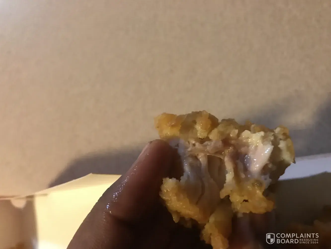 I purchased Popeyes chicken nuggets yesterday. When I bite into the chicken wasn't fully cooked, which made me feel ill.