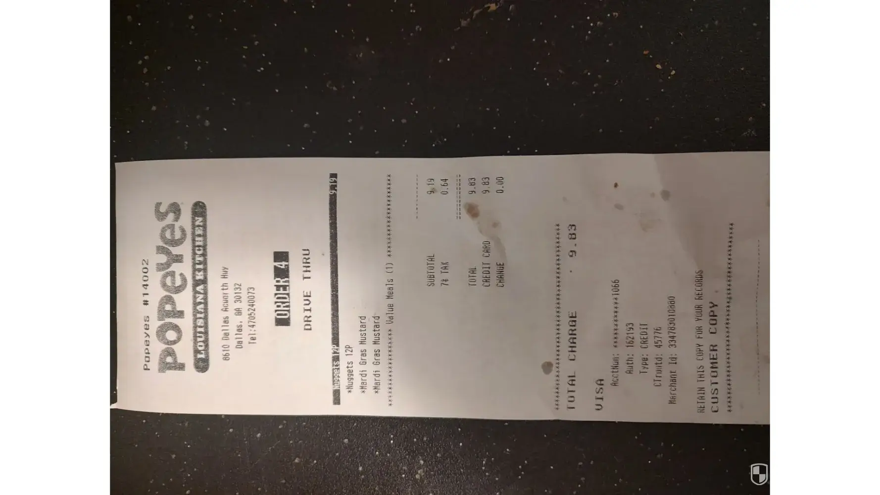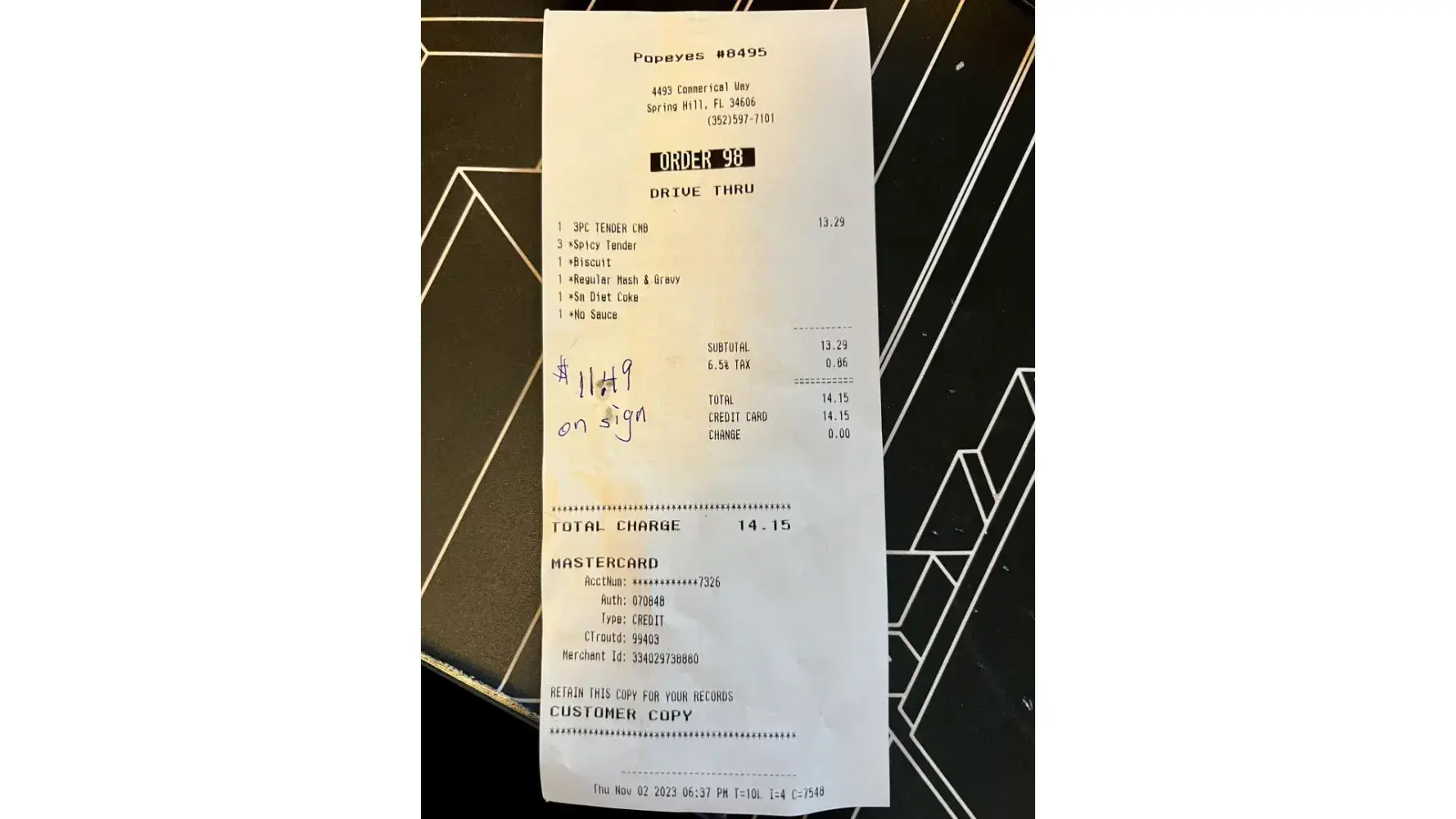 One was for $24.83 at Popeyes.