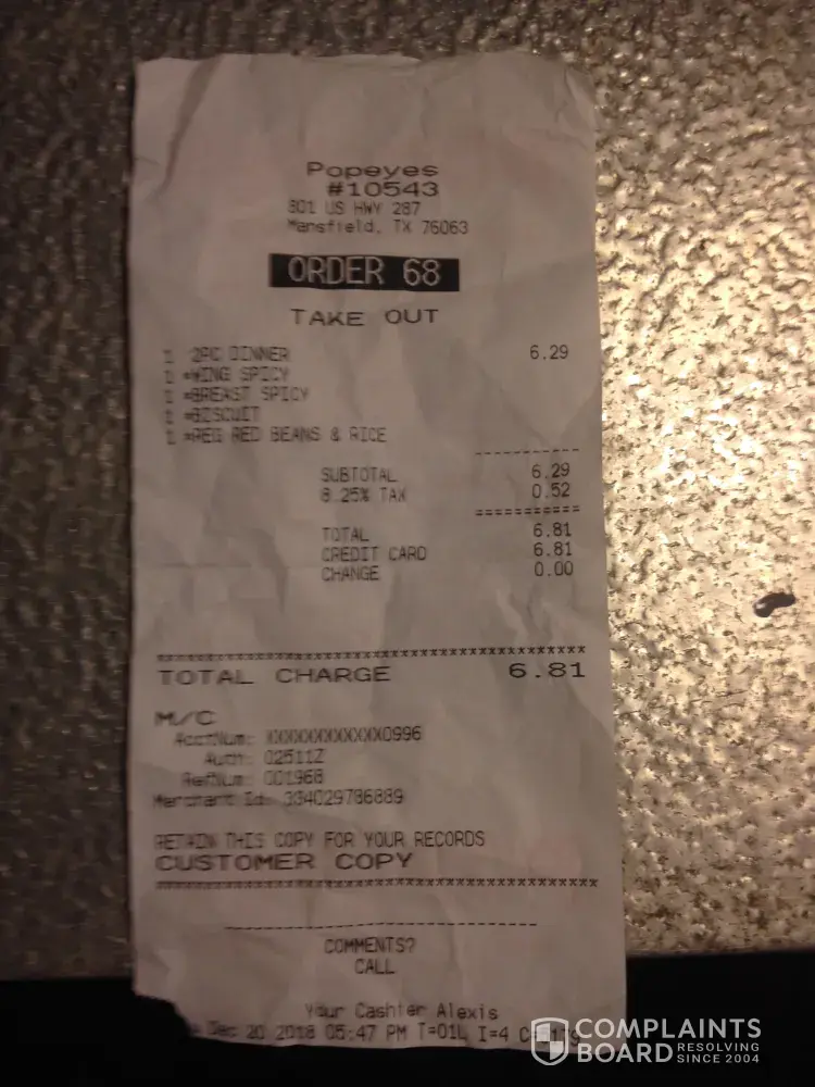 Popeyes Complaints Page 51 of 67
