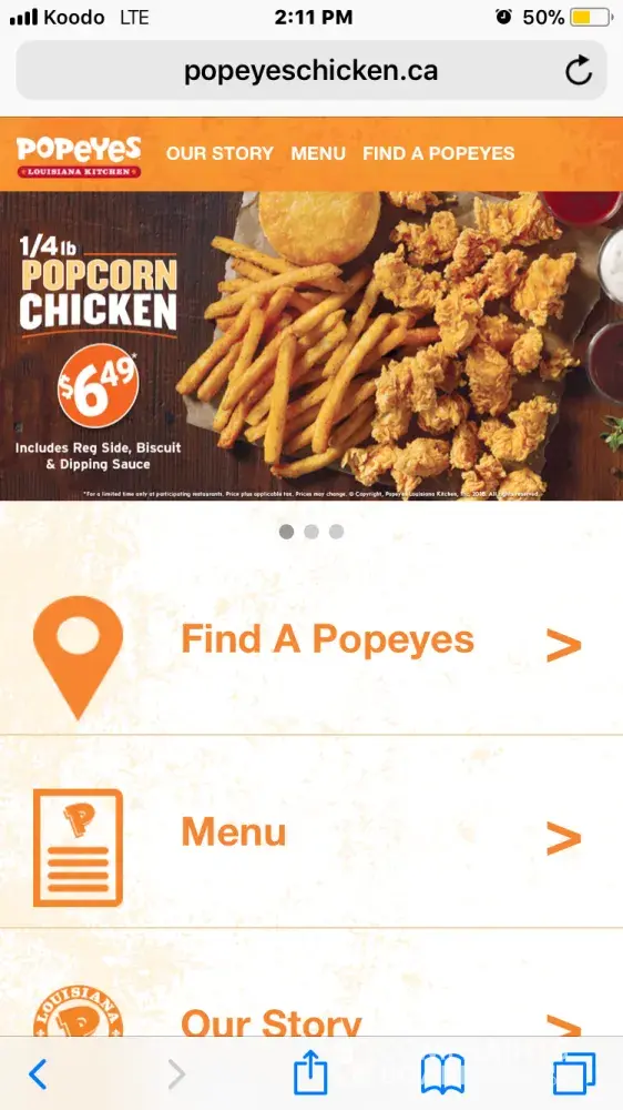 Hello. I was driving around Ottawa today and saw a big sign that says "1/4lb popcorn chicken 6.49$". So I went to the popeyes drive thru & the sign was displayed on their menu as well. I personally love their chicken tenders, and my brother loves popcorn chicken. So i order the tenders, they say "no. We don't have blackened ranch." So I compremissed and decicided on another sauce but was already irritated as this isn't the first time that they haven't had the blackened ranch sauce. So I processed to order the popcorn chicken, to which she says "no. We don't have popcorn chicken anymore. We don't sell that." So i said "well, why is it still advertised?" And she said "i don't know. It's a monthly promotion, but we don't have popcorn chicken." At that point, i just cancelled my order. You could barely even make out what she was saying, and her tone of voice wasn't very compassionate or friendly either. This is absolutely ridiculous! If you're advertising a product, customers should be able to purchase the product! If you run out, they should at very least have a sign out! I looked up reviews for this store (tenth line & innes rd, in ottawa) and ALOT of people have complainted! Something needs to seriously be addressed here! I have always loved popeye's, but after contiunes experiences of unfriendly customer service, running out of products, and a lack of compassion, i am not impressed by any means to ever want to return again!