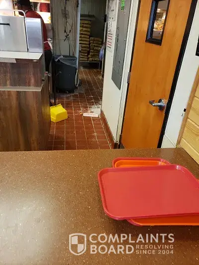This is the floor at popeye's chicken on route 159 in fairview heights Ill, where my wife and I was sold some refried stale old dry black chicken, with a all black rude uncaring crew, and a manager that's hidden by the workers.